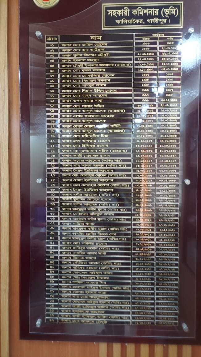 কালিয়াকৈর উপজেলা ভূমি অফিসের সহকারী কমিশনার (ভূমি)গণের নামের তালিকা
