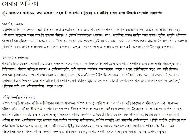 ভূমি অফিসের কার্যক্রম, তথা একজন সহকারী কমিশনার (ভূমি) এর দায়িত্বাবলির মধ্যে উল্লেখযোগ্যগুলি নিম্নরূপঃ